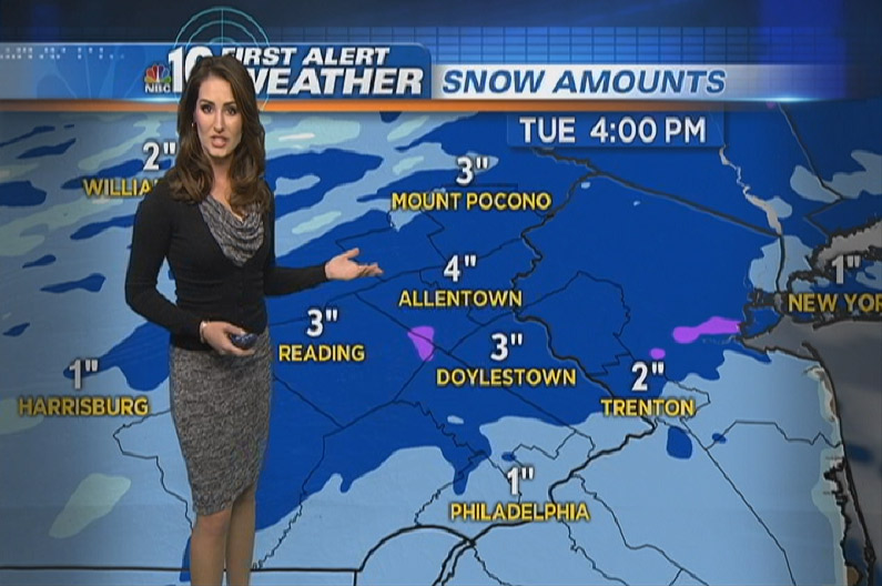NBC10 Meteorologist Tedd Florendo says snow should develop as early as 1 a.m. on Tuesday with the most intense snow set to hit shortly after 4 a.m. The snow should accumulate mainly during the morning rush hour and end between midday to late afternoon.